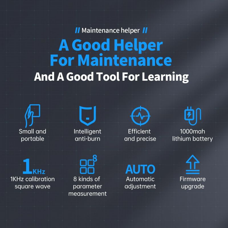 Longer battery life: This digital oscilloscope has a built-in 1000 mAh high-quality lithium battery, which provides up to 4 hours of continuous use after a full charge. The Type-C interface supports data transmission, charging, and firmware upgrades.
