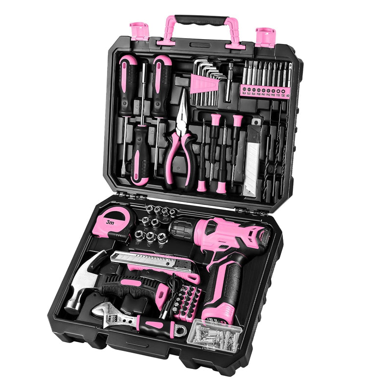 Multi-functional: This pink tool set contains the most practical and advanced tools for design, repair, or maintenance. It is perfect for decoration, furniture assembly, drilling, cutting, gardening, office, or daily home maintenance. The pink toolbox is neatly stored in a sturdy case to keep tools secure, clean, organized, and easy to find.