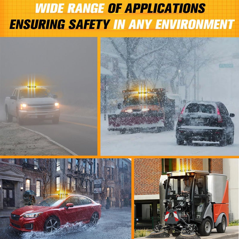 High performance LED: This patent design emergency flashing light bar uses 56 high-intensity LED lamp beads, which effectively provide higher brightness output, clearly visible day and night. It is very suitable for construction vehicles, snowplows, trucks, plow trucks, postal, and law enforcement cars.