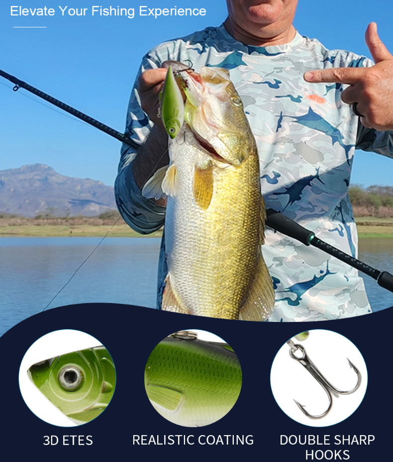 - Uncompromising quality: Fish with confidence knowing that our lures are crafted from high-quality materials. Equipped with super sharp hooks, these lures are designed to withstand the toughest battles. Their lifelike design, 3D eyes, and ultra-realistic fish patterns further enhance their appeal, fooling even the most cautious fish.