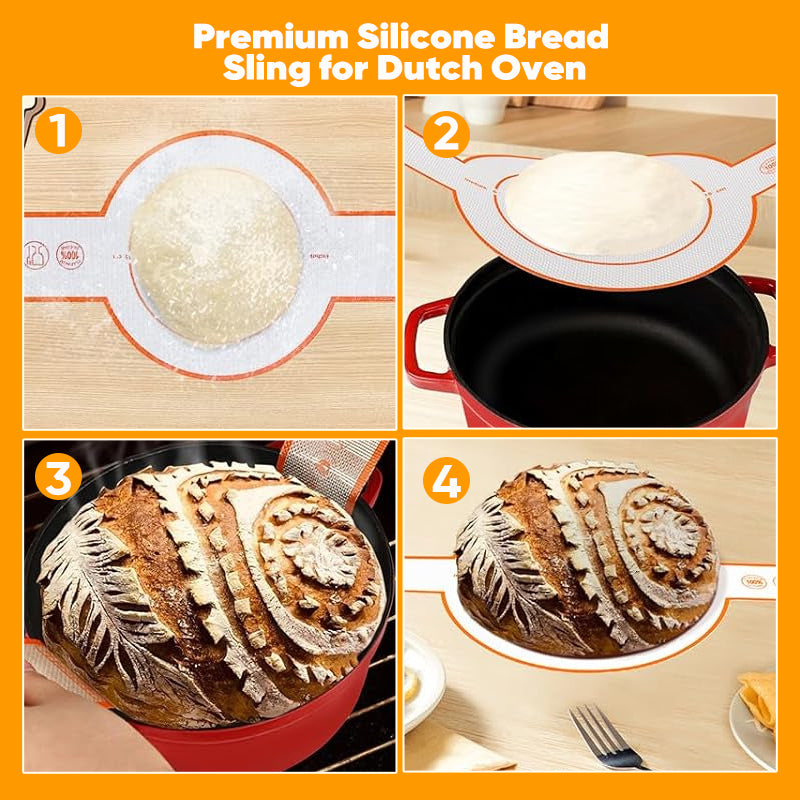 • Non-stick bread sling for dutch oven: The food-grade silicone sling withstands high temperatures, prevents sticking, and features long handles for safe and easy lifting when baking in a Dutch oven.