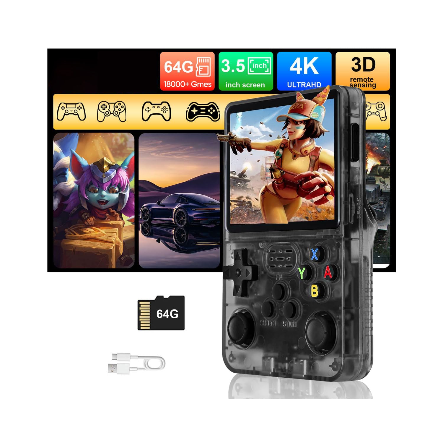 Dual: Dual joystick r36s game console: The retro game console adopts a dual joystick+button design, supports 13+ emulators, 64g card 15000+ classic games, can be connected to a controller to play two player games, and can also output through a large screen with a turning line.