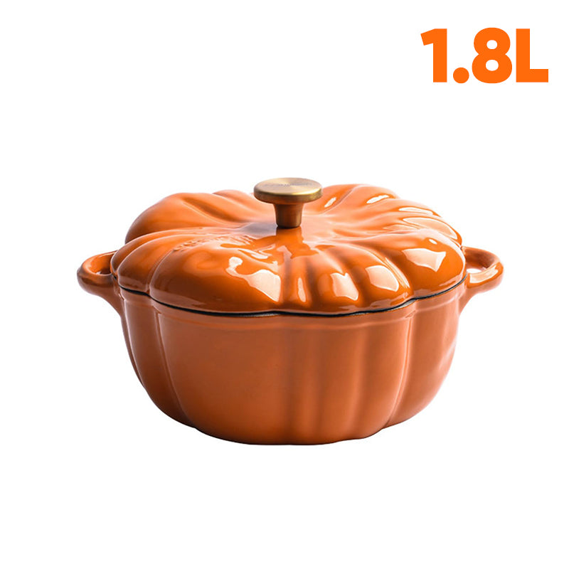 Nonstick & easy cleaning: This dutch oven pot with lid was fired at high temperature with a special process, nonstick and smooth glaze resists sticking or scratching, easy to clean, you can rinse it in warm water with soap to clean up or just put it in dishwasher (except the lid). Cast iron pumpkin bowl safe in microwave, oven, dishwasher and freezer. Suitable for gas, induction, electric ceramic, infrared and other stoves.