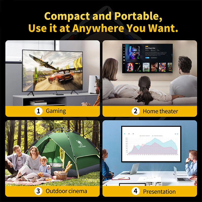 Powerhouse chip for unmatched performance: Featuring a built-in quad-core ARM Cortex-A53 chip combined with the Mali-G31 GPU, it fully embraces OpenGL ES 3.2, Vulkan 1.1, and OpenCL 2.0. This projector game console endows the projector with extraordinary computing speed and graphics processing prowess. Whether streaming high-definition videos, running graphics-intensive games, or multitasking, it operates smoothly without a hitch, presenting you with crystal-clear, vivid, and stable visual experiences that showcase cutting-edge technology.