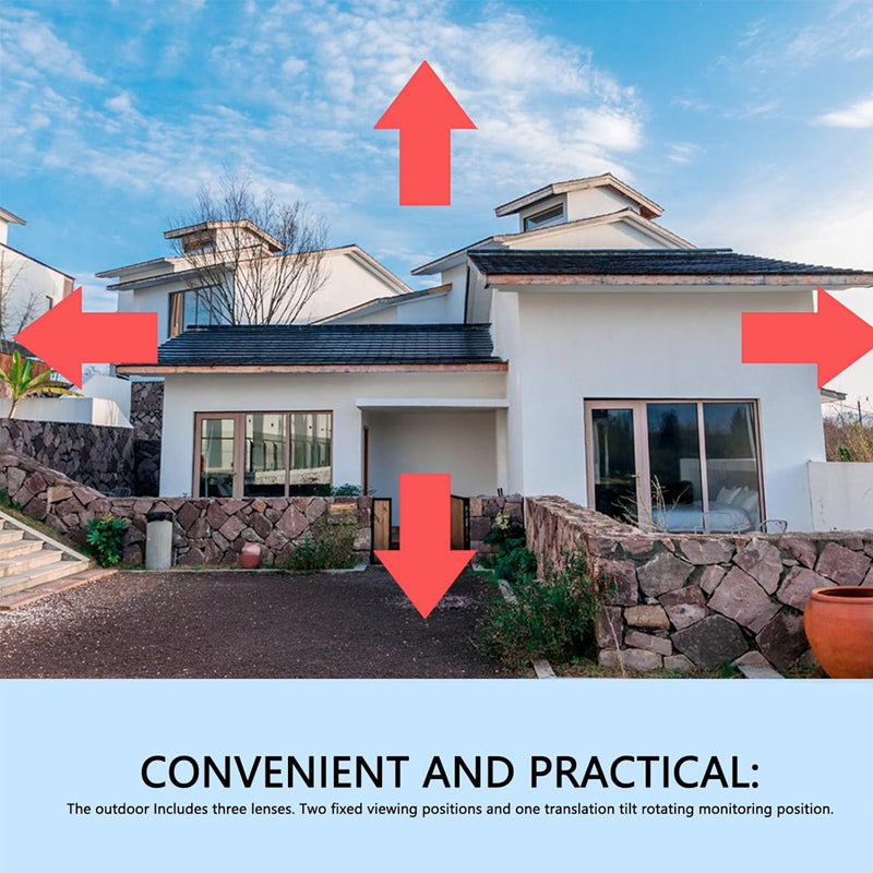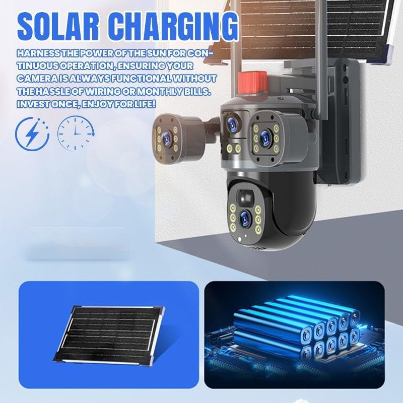 Triple-sensor coverage skill: Three strategically positioned lenses capture overlapping degree views simultaneously erasing blind spots and delivering comprehensive panoramic monitoring for large areas such as farm perimeters fishponds and expansive properties.