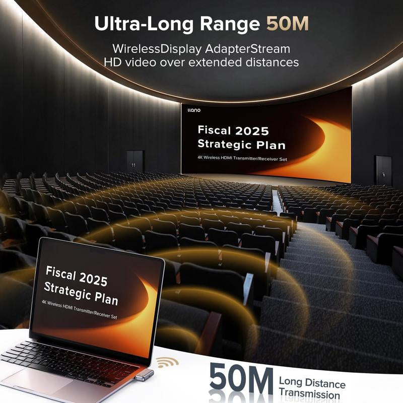 - Wireless HDMI transmitter and receiver: Plug and play, the wireless HDMI transmitter and receiver offers true plug-and-play functionality without the need for messy cables, Wi-Fi, apps, Bluetooth or complicated setup. Bluetooth HDMI easily connects to devices in seconds, while wireless HDMI technology ensures zero latency for smoother operation and a tidy workspace while delivering seamless, high-quality streaming.
