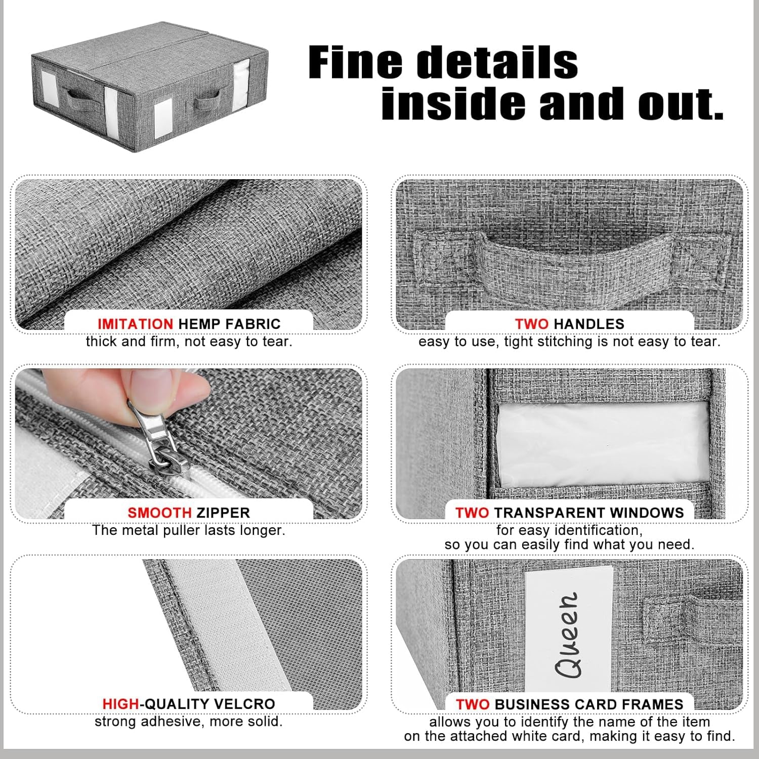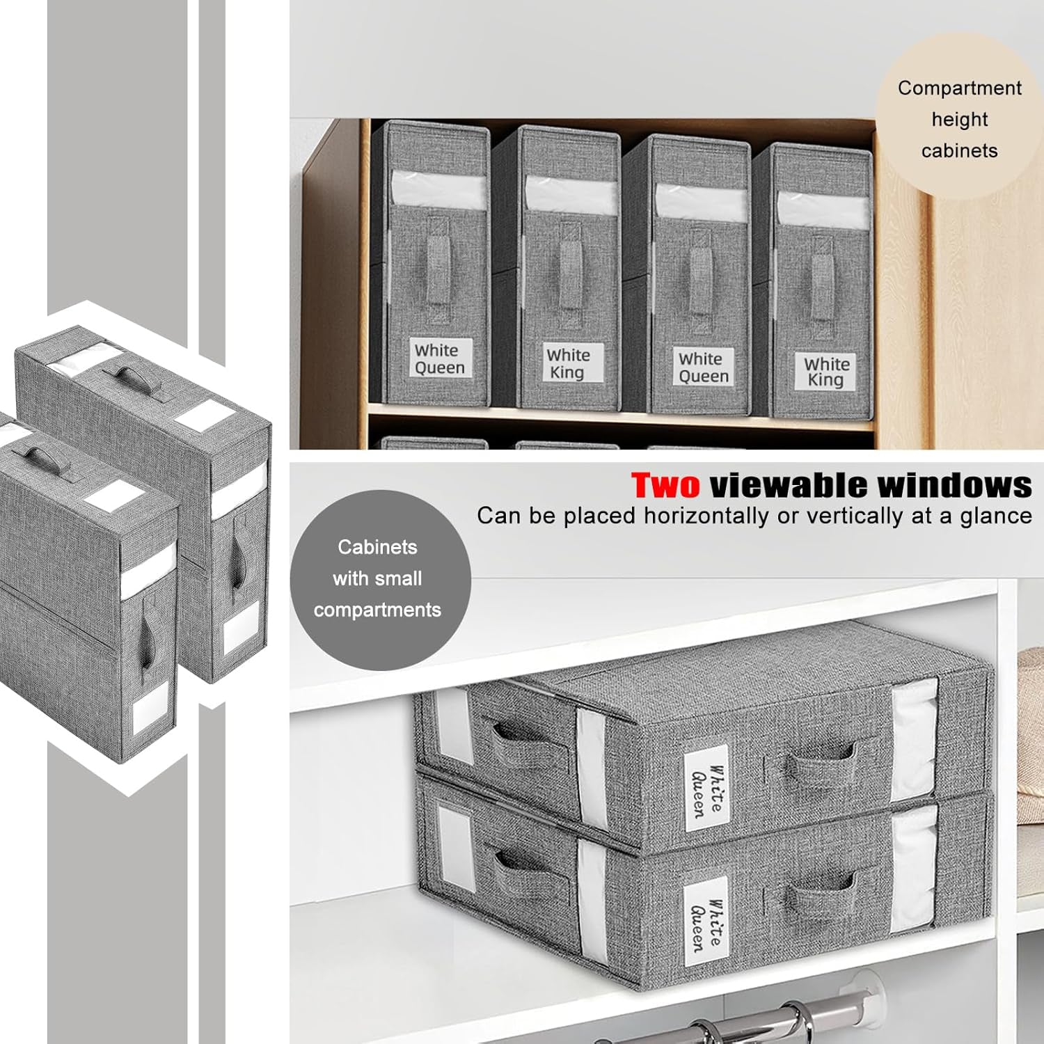 Dual view window: Designed with flexibility in mind, our storage box featuring two transparent windows, two label card slots, and two convenient handles, offering more horizontal and vertical placement options to accommodate your cabinet space. organizing your bedding becomes effortless, ensuring quick identification and retrieval.
