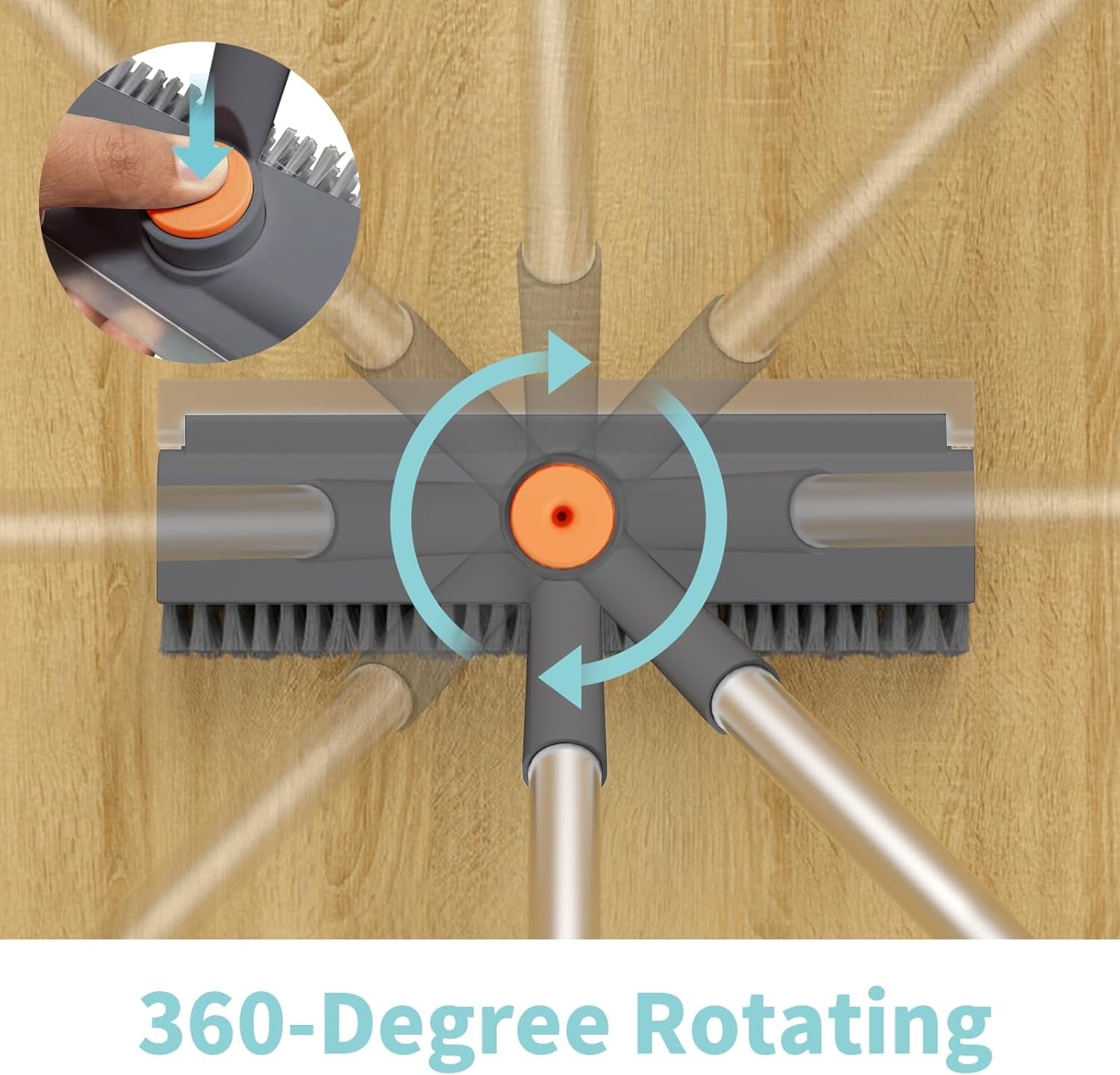 - 360-degree rotation: By pressing the center button, you can freely rotate the brush 360 degrees. Every 90-degree rotation clicks into place, allowing you to lock the angle securely for convenient cleaning in any direction.