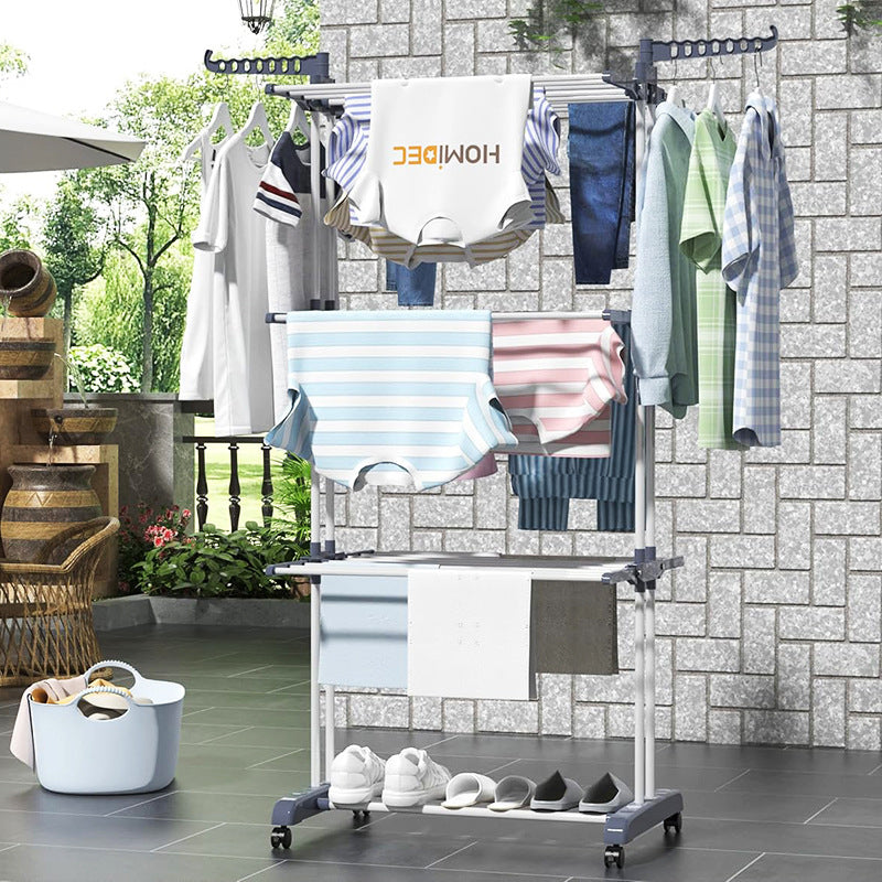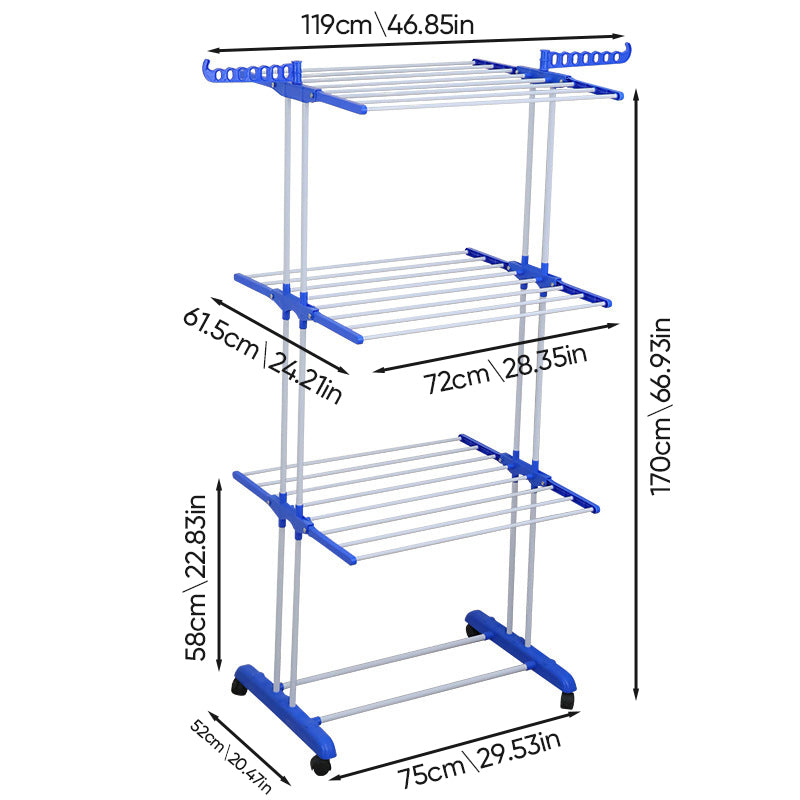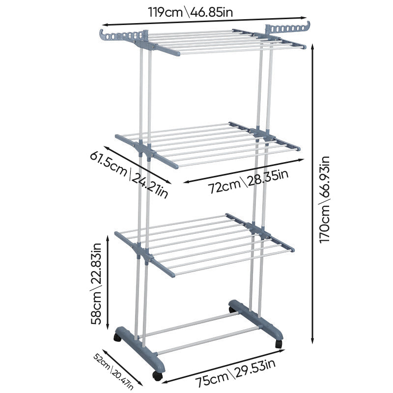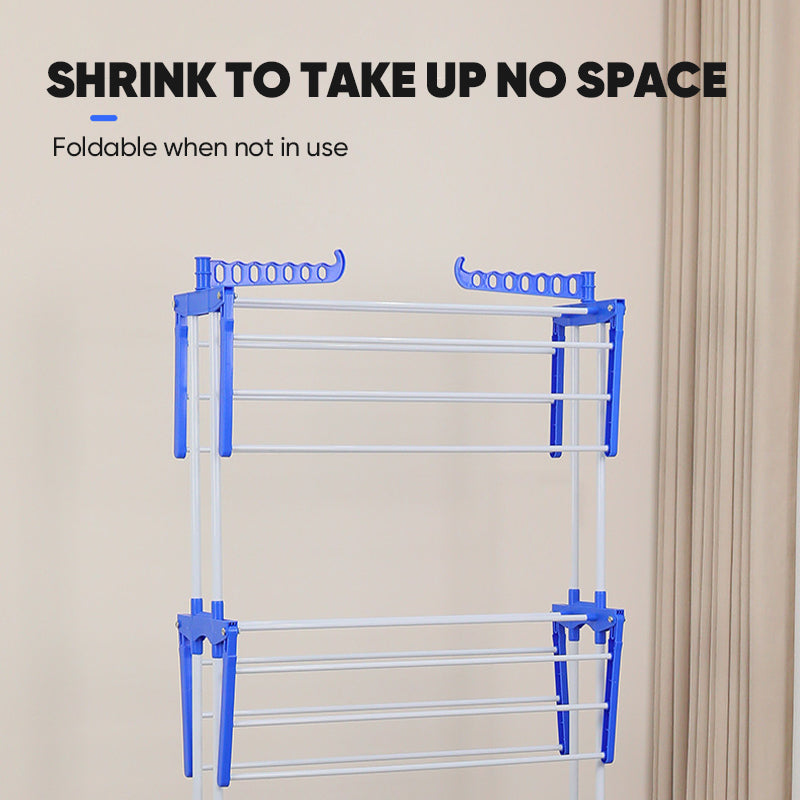 Foldable design: The heavy duty laundry drying rack folds down with trays and side wings for easy storage without taking up too much space. When not in use, it can be placed behind a door or in the corner of a pantry.