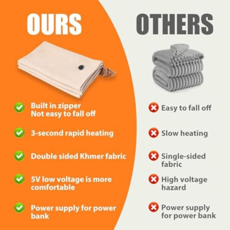 - Easy to store: Portable heated shawl is soft and foldable for office or dormitory use, does not take up space, 5V low voltage DC more secure charging bank, mobile phone or car adapter direct power supply.