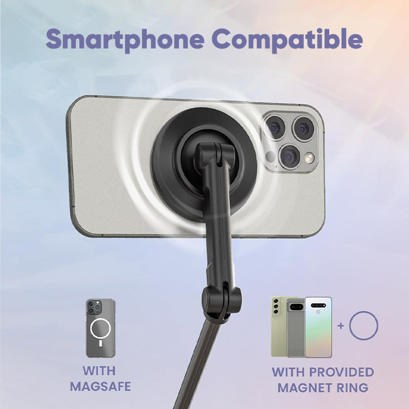 Bought this for travel photography and wow - that aluminum pole is sturdier than it looks! The magnetic mount holds my iPhone 15 Pro Max rock solid even when extended fully. Pro tip: The remote works from about 20ft away, great for group shots. Just don't forget to charge it!