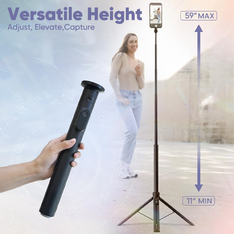 - Detachable bluetooth remote: Magnetic remote docks securely to the stick, allowing convenient hands-free photos and video recording.