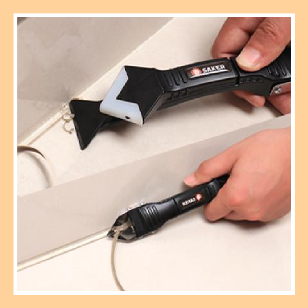 If caulk has become discolored, cracked, or begun to separate, it’s time for a new application. Before you can lay down a new bead, you must get rid of the old caulk. Speaking from experience, the job can be tedious and time-wasting. The Saker silicone caulking tool has a stainless steel scraper that can easily and efficiently remove the stubborn old glue.