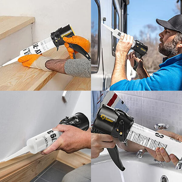 We bring you the smallest, lightest, non-drip Saker Portable Caulking Gun for DIY use. It is small and can be placed in the narrowest place. You can even cut off the extra part of the silicone box to make it easy to install. This is the only caulking gun that provides you with this unique feature. After trying this system, you will never use the old, nasty metal caulking gun again.
