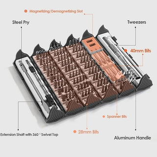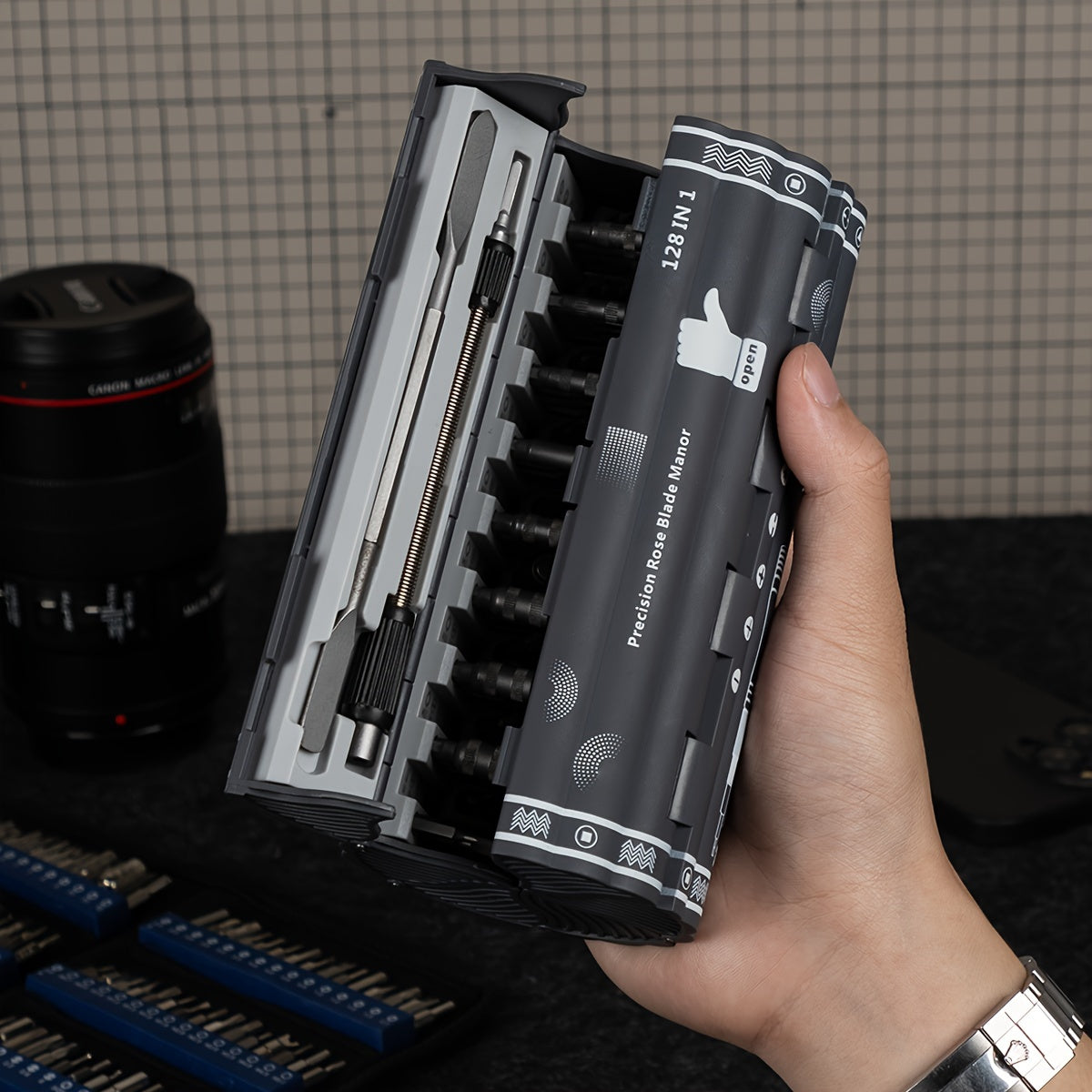 The 128-in-1 precision screwdriver set comes with 122 high-quality screwdriver bits, along with 6 essential tools including a screwdriver handle, extension rod, magnetizer, demagnetizer, precision tweezers, and a double-sided lever. Whether you're repairing laptops, smartphones, gaming consoles, cameras, watches, or glasses, this toolkit provides everything you need, making it an excellent choice for both professionals and DIY enthusiasts