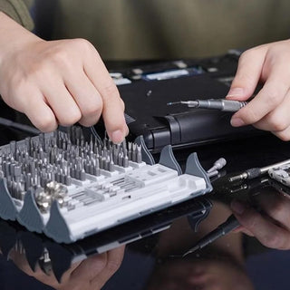 The screwdriver bits are made from premium S2 steel and heat-treated for enhanced strength and durability, with a hardness of over HRC62°, ideal for long-term electronics repair. Spare bits for commonly used types like Phillips, Slot, and Tri-point are included to prevent the need for a new set if a bit is lost or damaged. The magnetic tips ensure secure and precise handling of small screws
