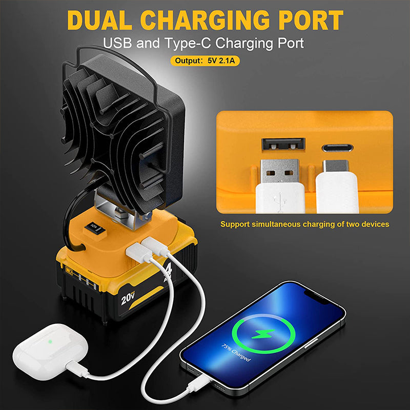 - Fast heat dissipation, safe to use: 20v battery light for dewalt 20v battery has thick aluminum housing, strong heat dissipation, ABS + V2 fireproof base material and built-in low-voltage protection to protect your batteries. The LED light will automatically stop working if the battery voltage is below 15v.