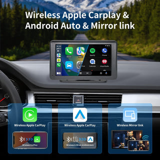 - Stable Wireless Apple CarPlay & Android Auto Compatibility: Effortlessly connect your smartphone to the Saker Portable Car play Screen, which supports both Apple CarPlay and Android Auto. The moment you enter your vehicle, your phone connects automatically, integrating your preferred apps and features into your driving experience. This versatile screen is compatible with most cars.