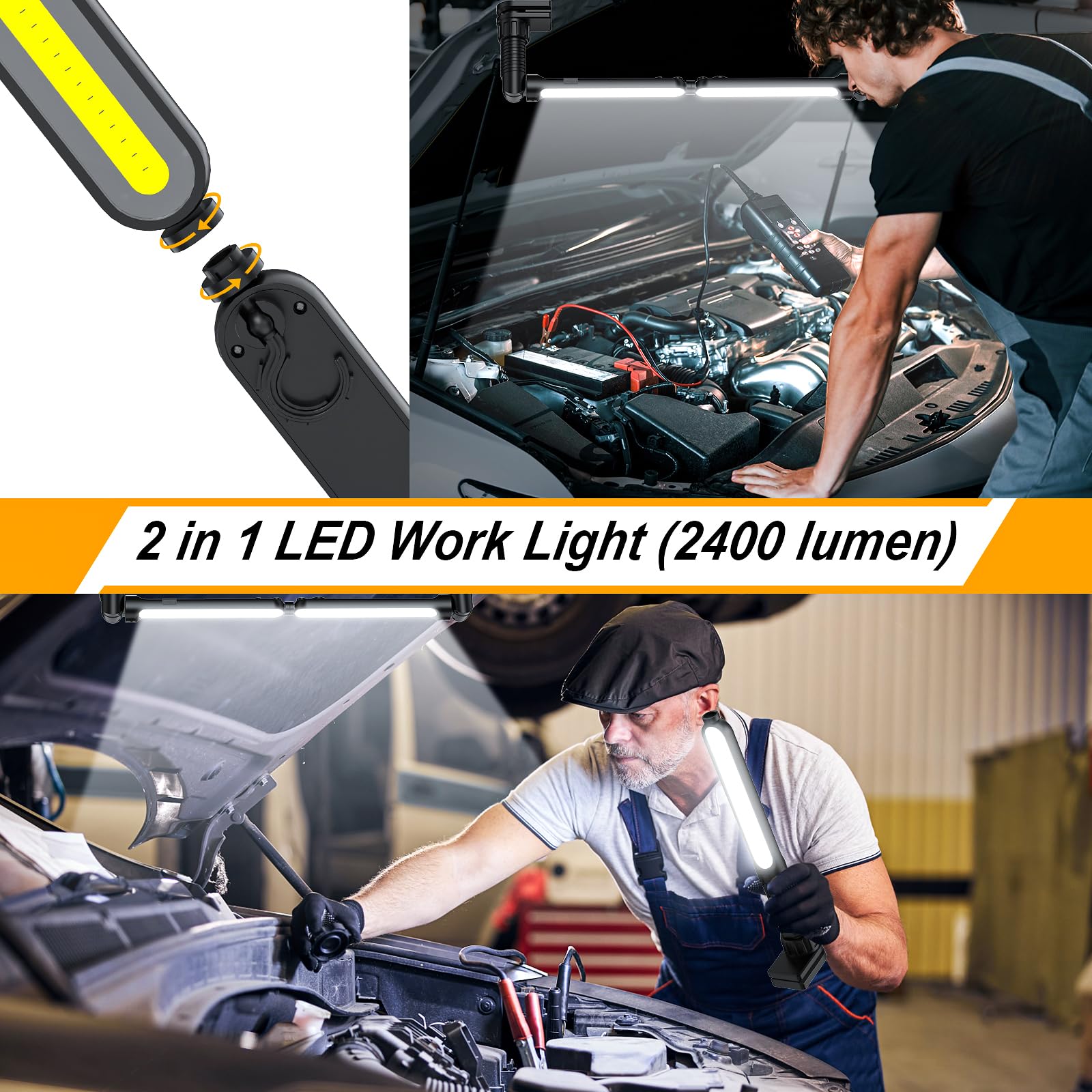- Brightness levels: This magnetic work light offers three brightness levels: high, low, and red light flash, meeting various illumination needs. It provides up to 2400 lumens of high brightness with a 13-inch COB board for exceptional lighting. Whether you need intense illumination for nighttime work or emergency situations, it keeps you working at your best.