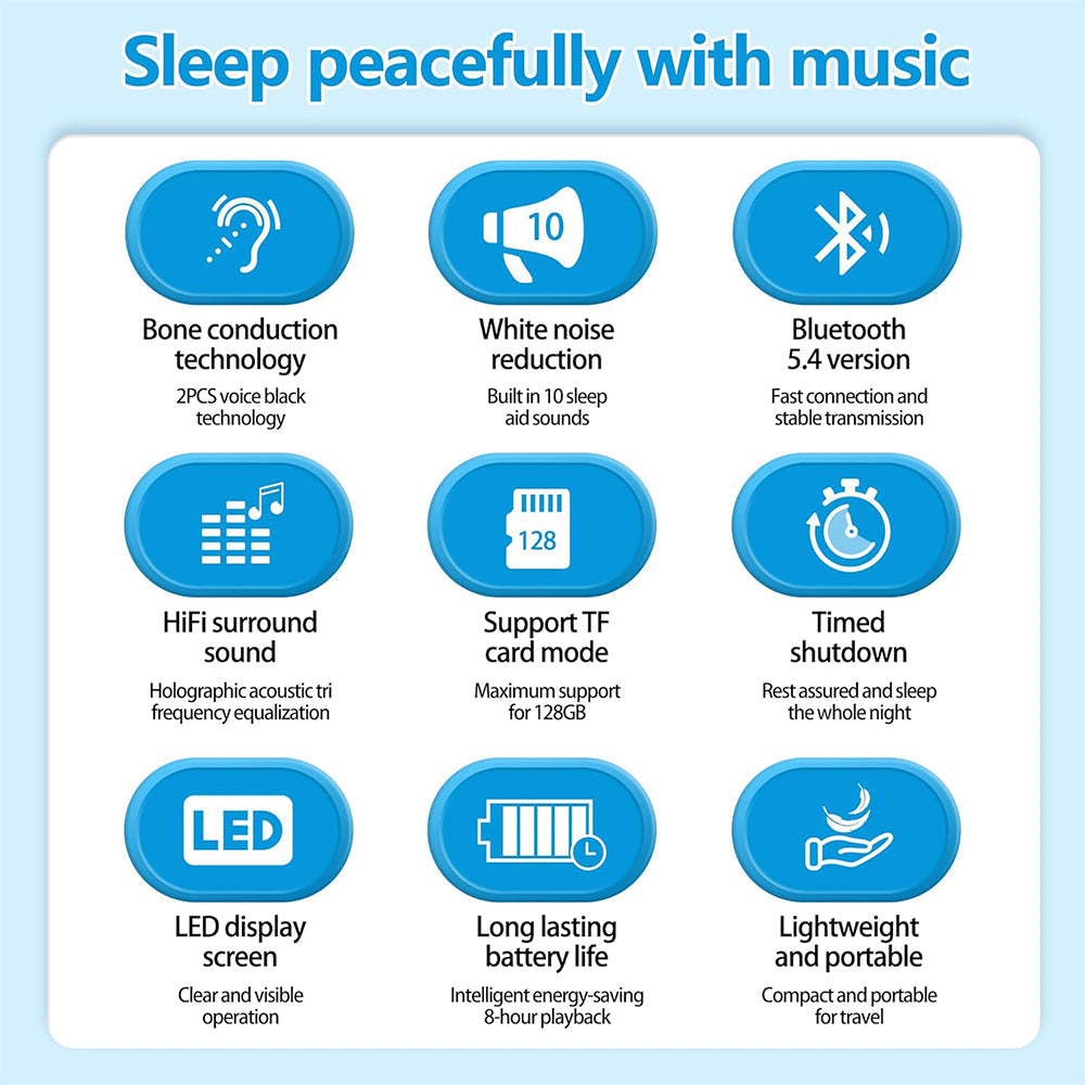 • Bone Conduction Technology: Delivers sound directly through bone conduction, reducing ear strain and creating a private, peaceful sleep environment.