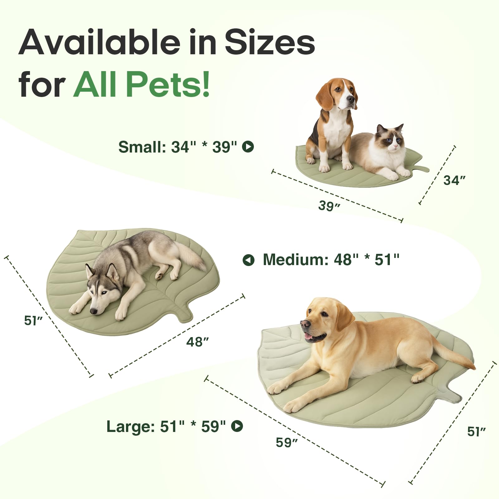 Stylish leaf-shaped design: The cooling mat's unique leaf shape adds a natural and elegant touch to your home decor while providing a spacious and comfortable area for pets to lounge on. It's perfect for adding a stylish flair to your living space while keeping your pet cool.