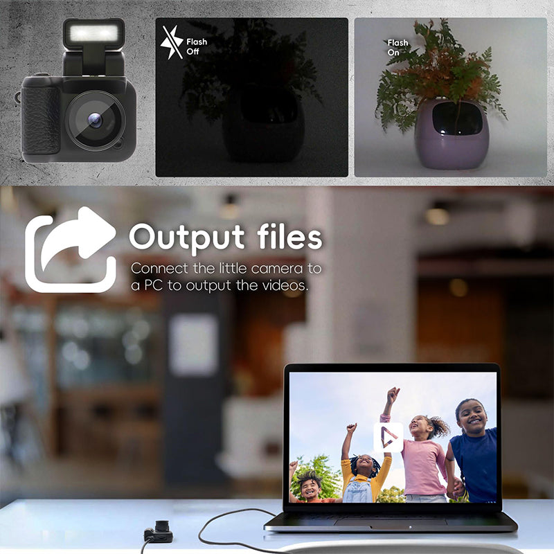 Miniature camera design: This miniature camera features a classic camera design packed with functionality, allowing you to capture photos, videos, and audio.