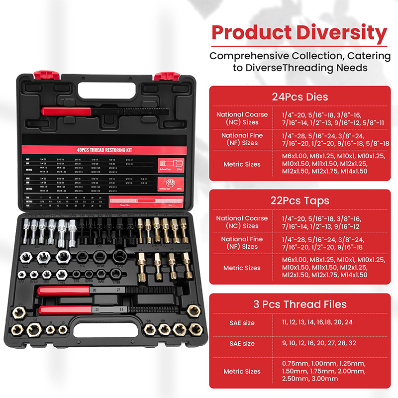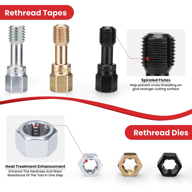 Function: Can be used to repair damaged screws and nuts, remove thread rust and burrs, and repair threads.
