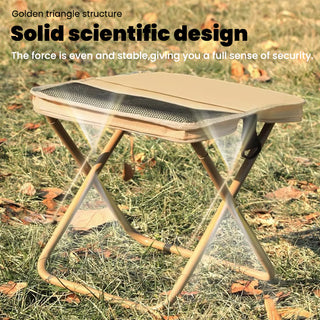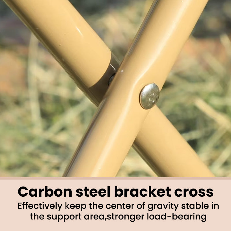 Carbon steel bracket: Crafted with a carbon steel bracket, this stool features a cross-support structure that effectively stabilizes the center of gravity within the support area. This design ensures stronger load-bearing performance and enhanced safety. Its compact, foldable design allows you to carry it like a handbag—perfect for travel, camping, or daily commuting.