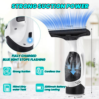 Powerful suction: Equipped with a 2200mAh battery, provides 2000Pa suction power for streak-free, efficient water removal for up to 45 minutes.