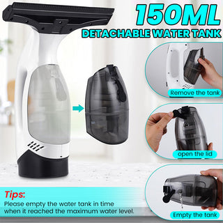 Versatile use: Perfect for a variety of smooth surfaces like windows, mirrors, tiles, and cooktops, combining spray, wipe, and suction in one device.